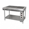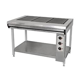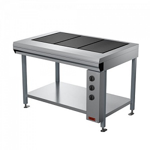Плита профессиональная электрическая ПЭ-0,51С 3-х конфорочная без жарочного шкафа, облицовка плиты выполнена из нержавеющей стали.