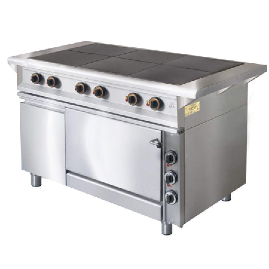 Плита электрическая с духовым шкафом и шестью прямоугольными конфорками предназначена для приготовления первых, вторых и третьих блюд, в частности для жарки, тушения, запекания, выпечки кондитерских изделий на предприятих общественного питания.