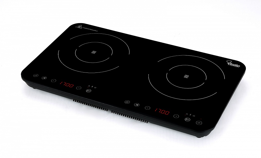 Настольная индукционная плита VIATTO VA-ET350D компактная, легкая, простая в управлении. Корпус изготовлен из пластика. Поверхность — из стеклокерамики. Плита имеет 2 зоны нагрева (1,7 кВт и 1,8 кВт) с независимой регулировкой. Оснащена сенсорной панелью управления.