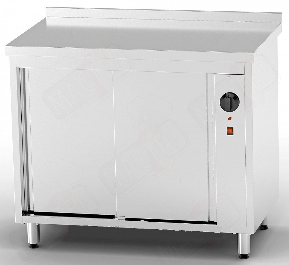 Столы тепловые изготавливаются с подогреваемым внутренним объемом, что позволяет использовать их в горячих цехах и на линиях раздачи. За счет установки тэна и тепло-вентилятора обеспечивается равномерный обогрев объема, это позволяет сохранять блюда при оптимальной температуре. Система контроля и регулирования температурного режима - механическая.