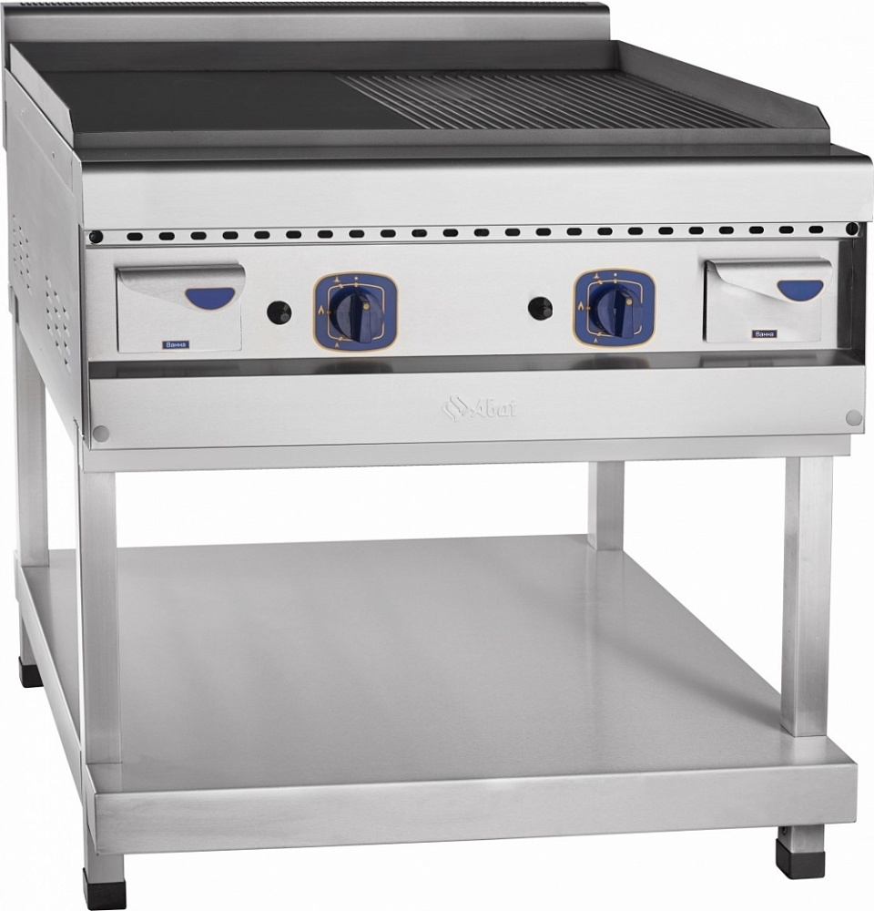 стальная жарочная поверхность 834х703 мм имеет одну половину с гладкой поверхностью, другую с рифленой;