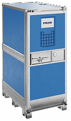 Внутренний корпус термоконтейнера выполнен из стеклопластика, не имеет швов и способен выдерживать воздействие температур от -30 до +90°С.